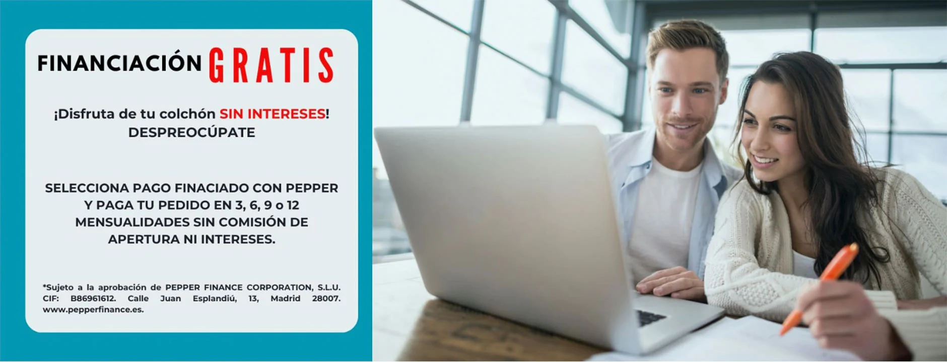 Tu eliges el modo de pago que mejor se adapte a ti. Financiamos sin intereses.
